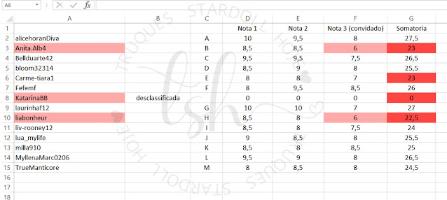 Vamos para notas, nessa primeira etapa as três com menores notas seriam eliminadas: